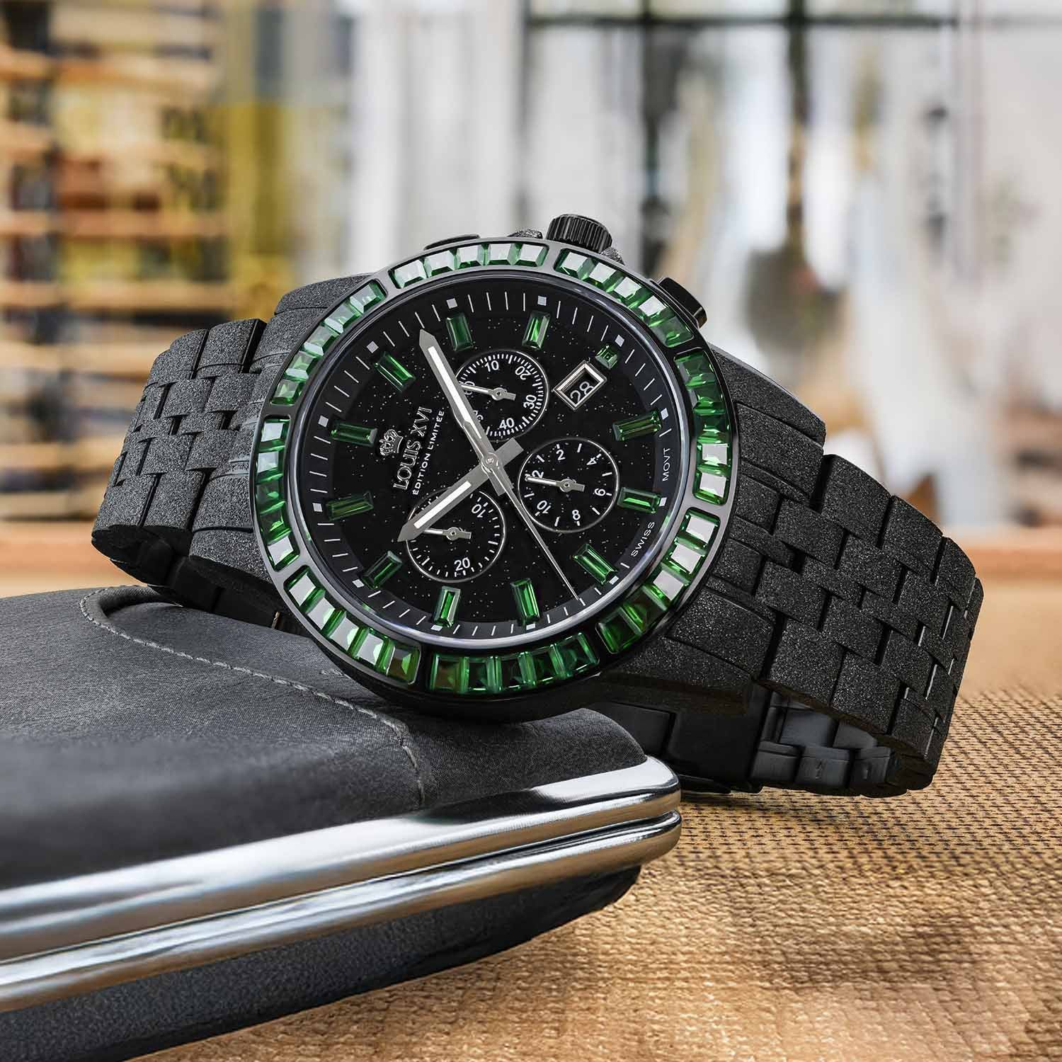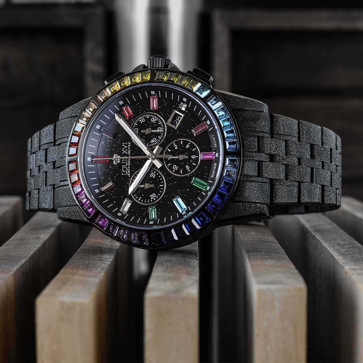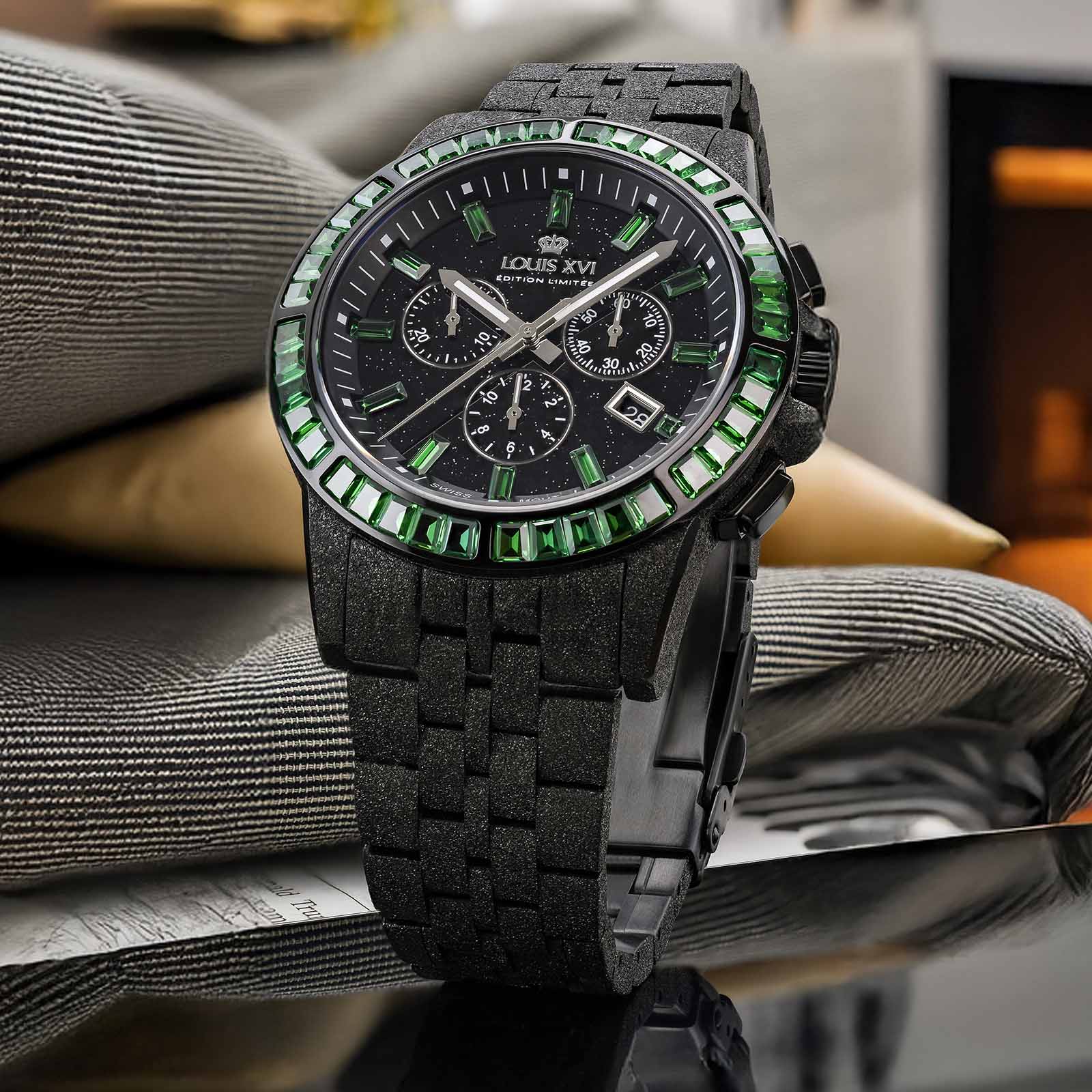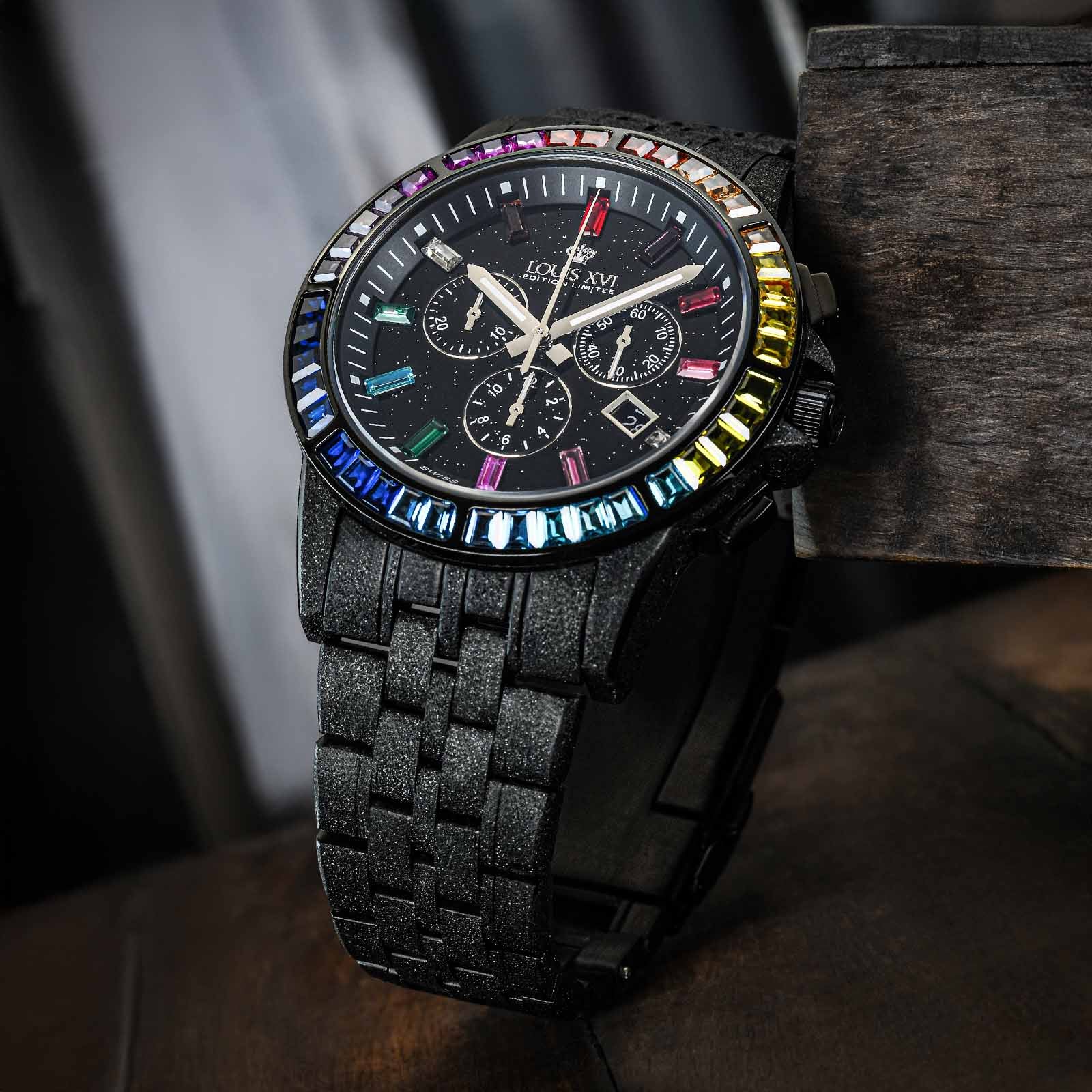 Strahlende Farben wie Desert Gold, Caviar Black, Midnight Blue, Emerald Green und Rainbow verleihen dieser Kollektion ihre außergewöhnliche Eleganz und Vielseitigkeit. Jede Nuance erzählt ihre eigene Geschichte – vom warmen Glanz der Wüstensonnenstrahlen bis zur tiefen Magie des Nachthimmels. Mit einem Hauch von Luxus und einem einzigartigen Schimmer unterstreichen diese Farben die Individualität und Schönheit der Uhren. Trage sie mit Stolz – sie sind so besonders wie Du!