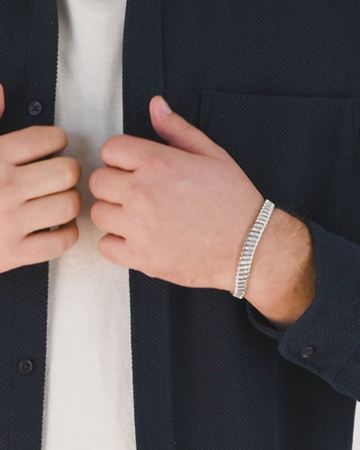 Dieses 8mm breite Armband aus S925 Sterlingsilber fällt aufgrund seiner markanten, zugleich harmonischen Gliederstruktur auf. Jedes polierte Element steht für Präzision und Balance. Royalty Heritage‑Steine im Baguette‑Schliff verleihen der Form Tiefe und Brillanz.