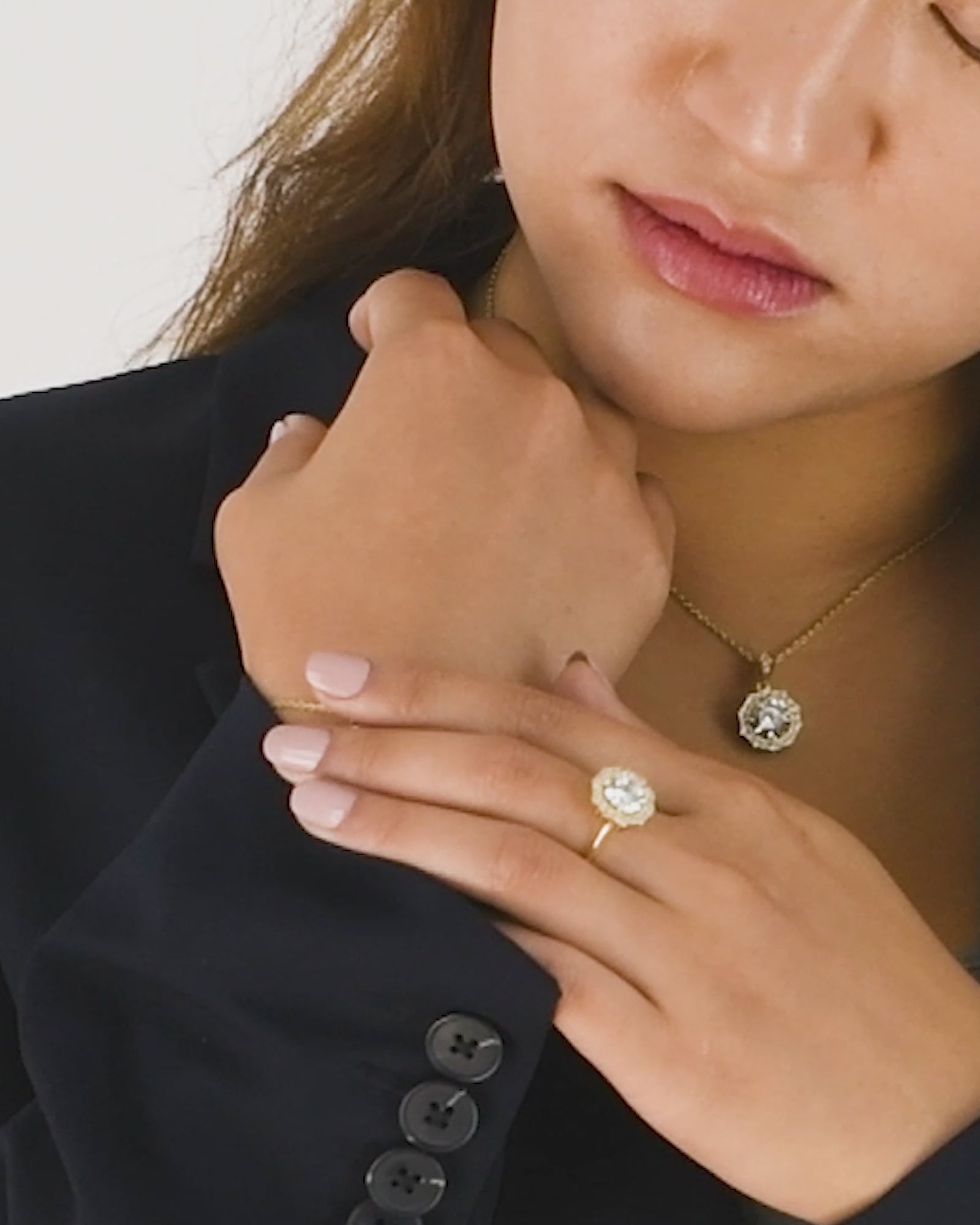Gefertigt aus edlem S925 Sterlingsilber und – je nach Variante – veredelt mit warm schimmerndem 14 Karat Gold. Jeder Stein, jede Facette wird in sorgfältiger Präzision eingefasst, um den perfekten Glanzmoment zu schaffen.