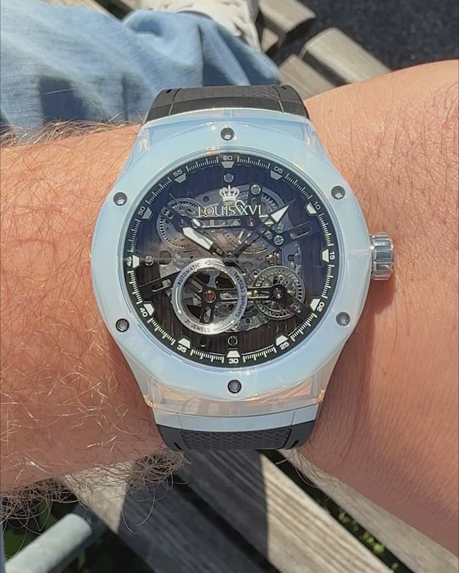 Saphirglas ist nach Diamant das zweithärteste transparente Material der Welt. Dies bedeutet, dass es äußerst widerstandsfähig gegenüber Kratzern und Abnutzung ist. Selbst nach Jahren intensiver Nutzung bleibt das Glas Ihrer Uhr klar und unbeschädigt, was die Lesbarkeit und Ästhetik Ihrer Uhr bewahrt.