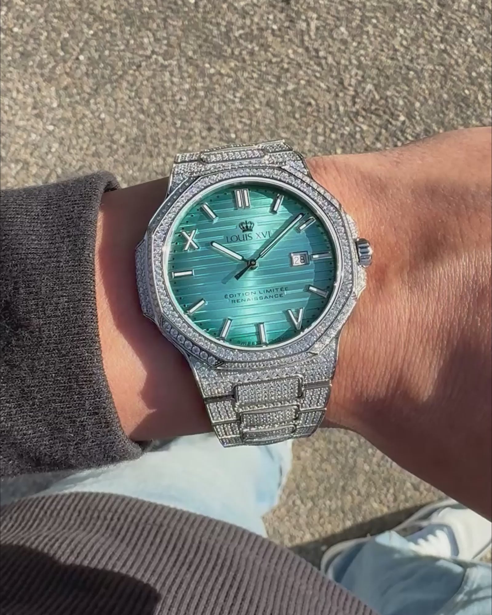 Frisch, funkelnd, voller Stil – die Arctic ist gemacht für helle Tage und lange Nächte. Das türkis - blaue Zifferblatt bringt Sommerfeeling pur, während das komplett mit CZ-Diamanten besetzte Design für luxuriösen Glanz sorgt. Eine Uhr, die auffällt – aber niemals aufdringlich wirkt.